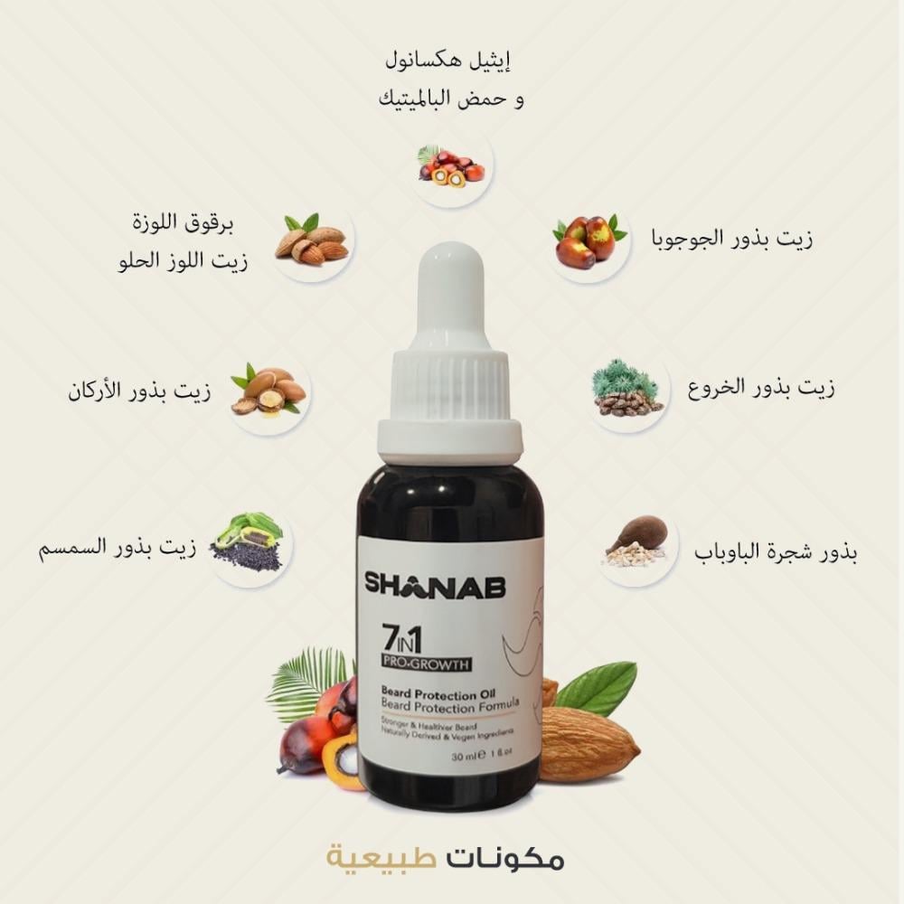 زيت تغذية وتقوية اللحية والشعر 7 في 1 من شنب