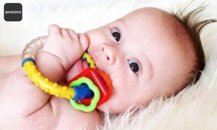 - السماح لطفلك بوضع الألعاب المعقمة جيدًا، ذات الشعيرات الناعمة مثل شعيرات فرشاة أسنان الأطفال.